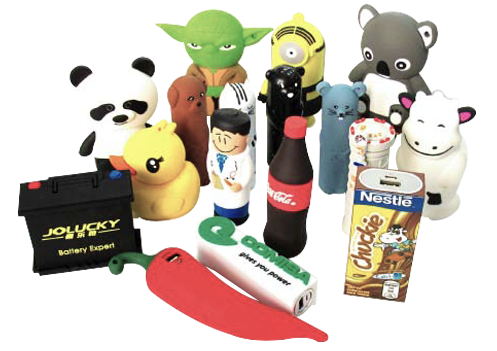 そして、弊社はゴム製品において合理的な金型費、MOQ300PCSを提供しているため、オリジナルのUSBメモリとモバイルバッテリーを製作する事が可能です。